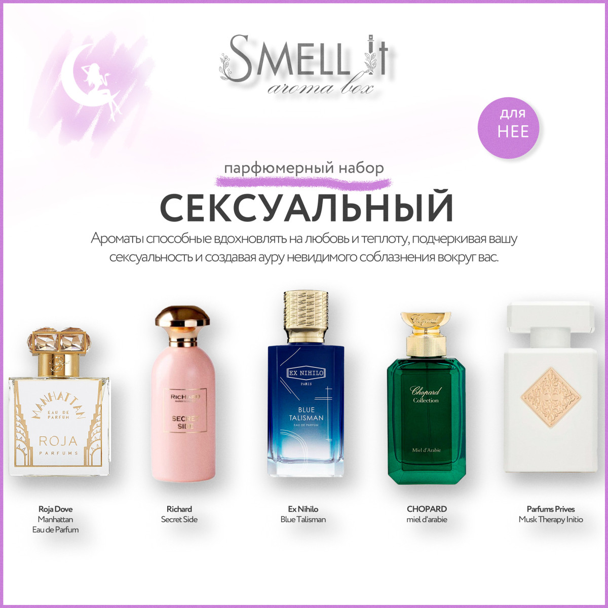 Если вы всегда стремитесь быть в курсе последних тенденций и первым пробовать новинки, аромабокс "Новинки" идеально подойдет вам. В нем будут собраны самые популярные и свежие ароматы сезона, которые только начинают завоевывать популярность среди ценителей парфюмерии. Если вы хотите, чтобы ваш аромат отражал ваш современный образ жизни и был на одной волне с последними модными тенденциями, "Новинки" будет содержать самые актуальные парфюмерные тренды. Это могут быть утонченные и сложные композиции с редкими ингредиентами, которые добавят изысканности вашему стилю.