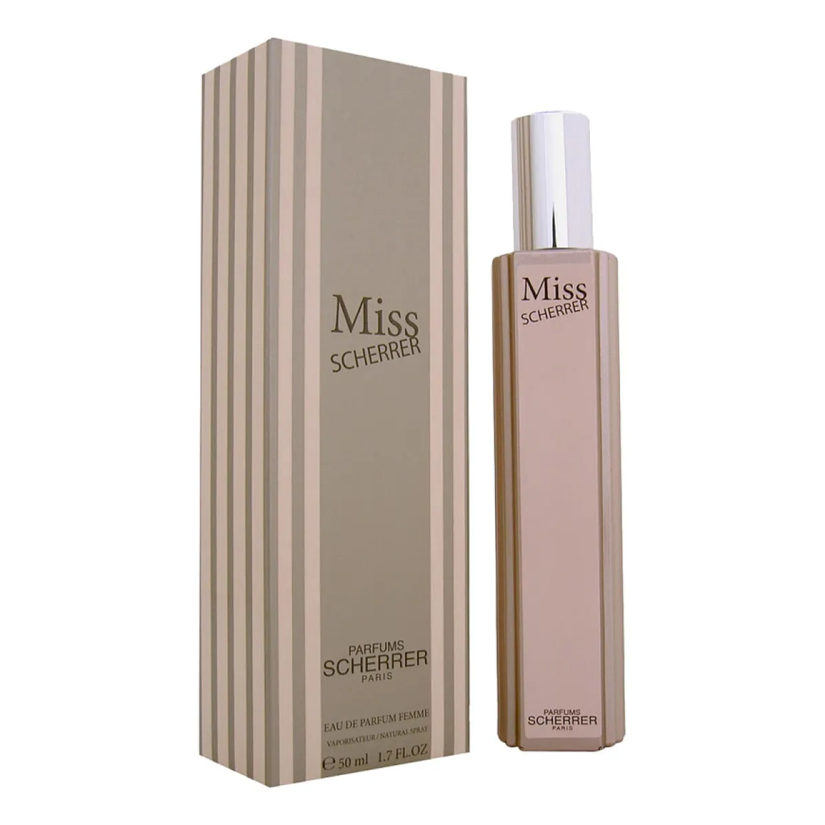 Описание Miss Scherrer рисует образ ухоженной женщины. Сначала ощущается взрыв свежести и зелени, как после дождя в весеннем саду. Затем раскрывается букет цветов, где тубероза и роза играют главные роли. В конце остается теплое, древесное послевкусие, которое напоминает о лесе после дождя.